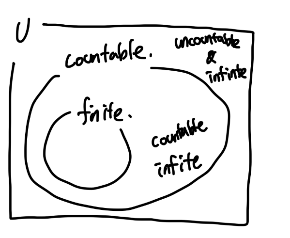 universal set : 상상할 수 있는 모든 요소의 집합 (set of all elements under consideration)