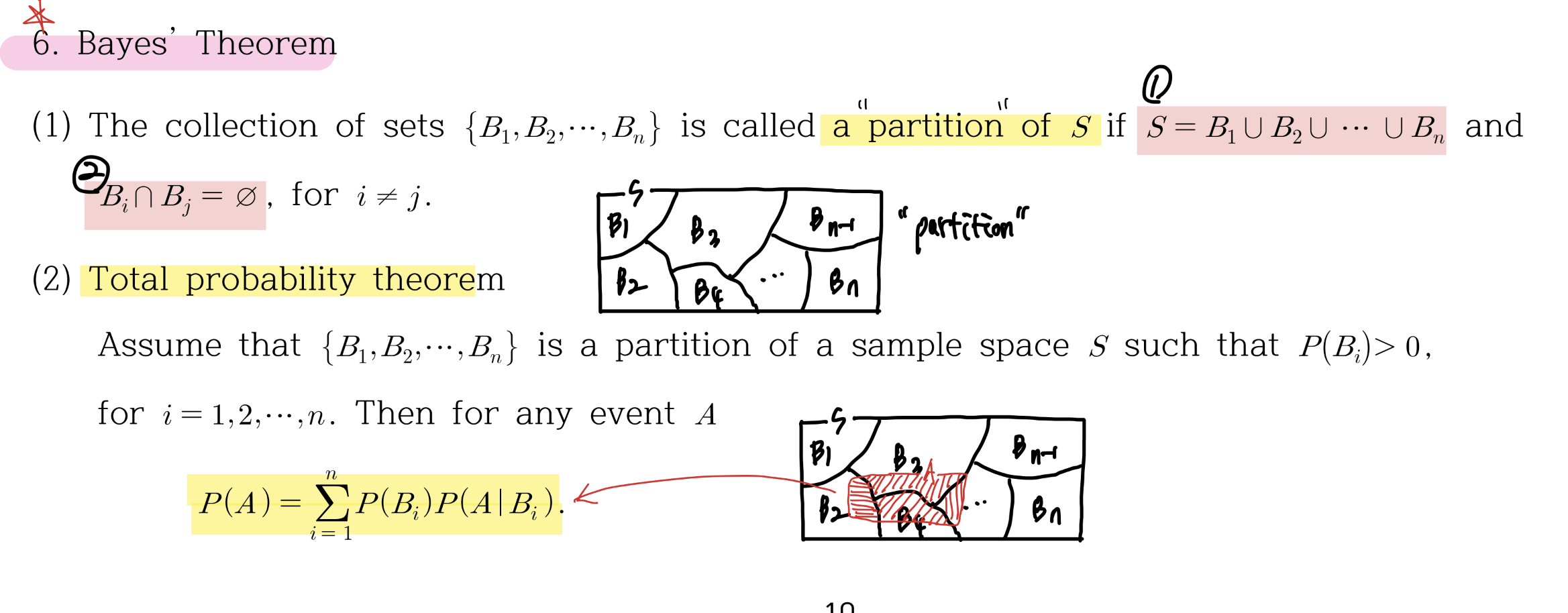 다 더하면 전체집합인데, 교집합이 하나도 없을때. 마치 세포분열한 colony같이 분할 될때 이를 Partition이라 한다.