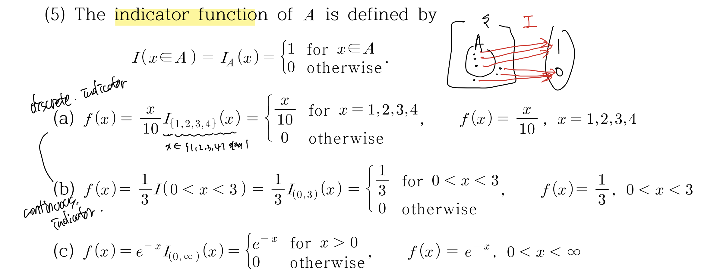 $$I(x \in A) = I_A (x) = \begin{cases}