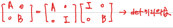 다음과 같은 상황에서 각각의 행렬식의 곱으로 계산할 수 있다. 이는 Laplace Expansion을 이용해서도 쉽게 구할 수 있다.