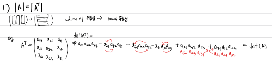 Transpose와 determinant 는 독립적이다. \(det(A^T) = det(A) \)
